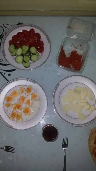 Eşim: Akşamdan kalan kuru börülce yemeği, pirinç pilavı, ayran