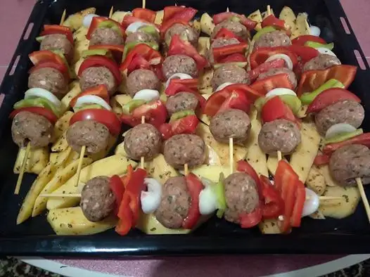 bende bundan yaptım. tencerede ama. bide patesleri çöp şişe dizdim.bide patlıcan taktımDün yaptığım çöp şiş köfte üzerinede salçalı sos döktüm salça olmadan sevmiyorum:) Piştikten sonra çekmeyi unutmuşum neden acaba