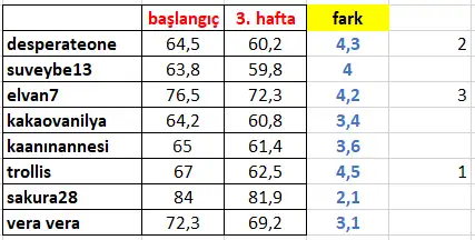 Sonra 6 ay ara verdim 3 Nisa'nda tekrar başladım 2,5 ay olacak 59,8 e düştüm