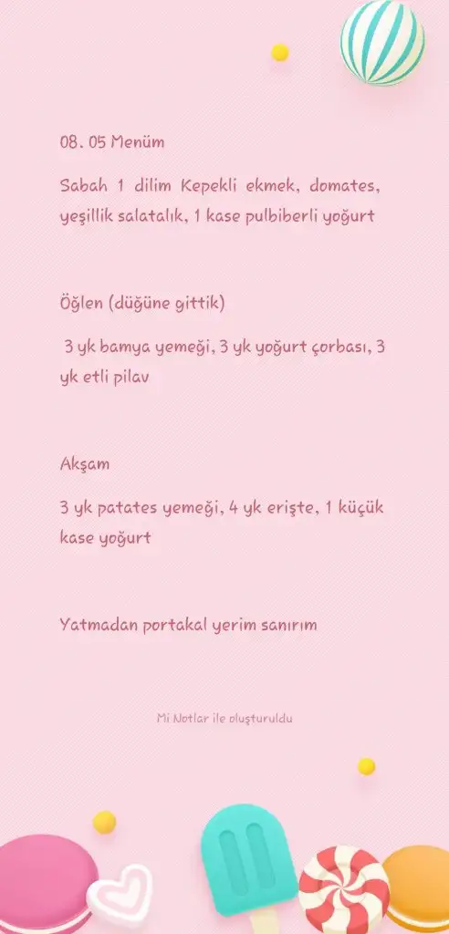 Öğlen 100 gr kadar et döner 2 kaşık pilav salata cacık
