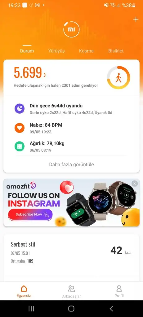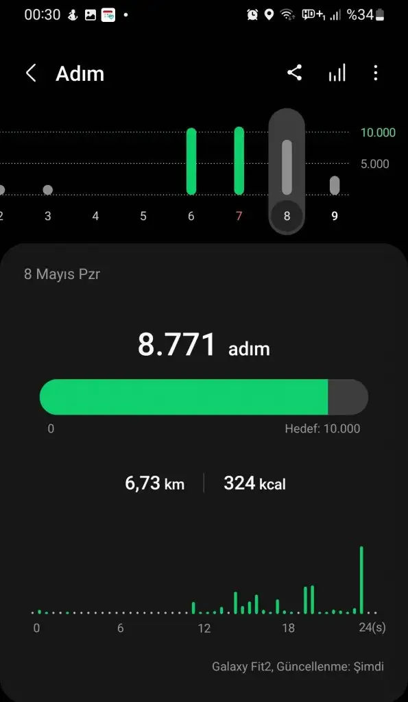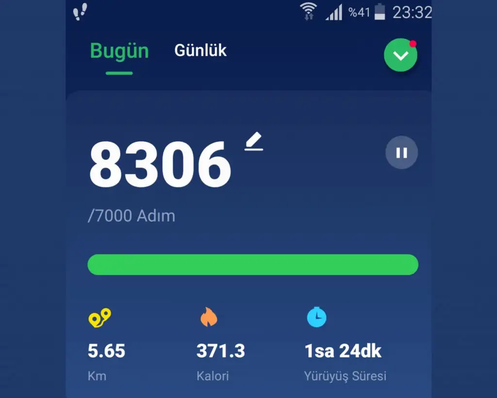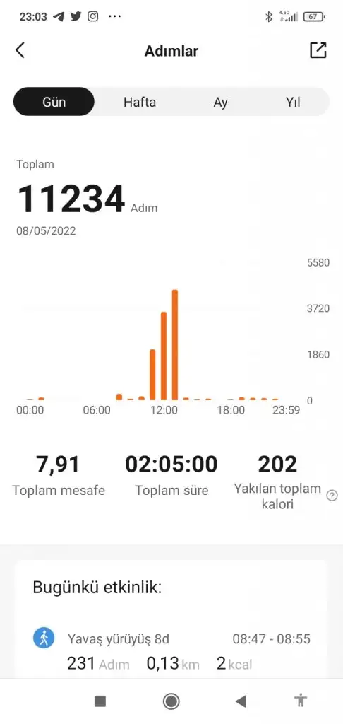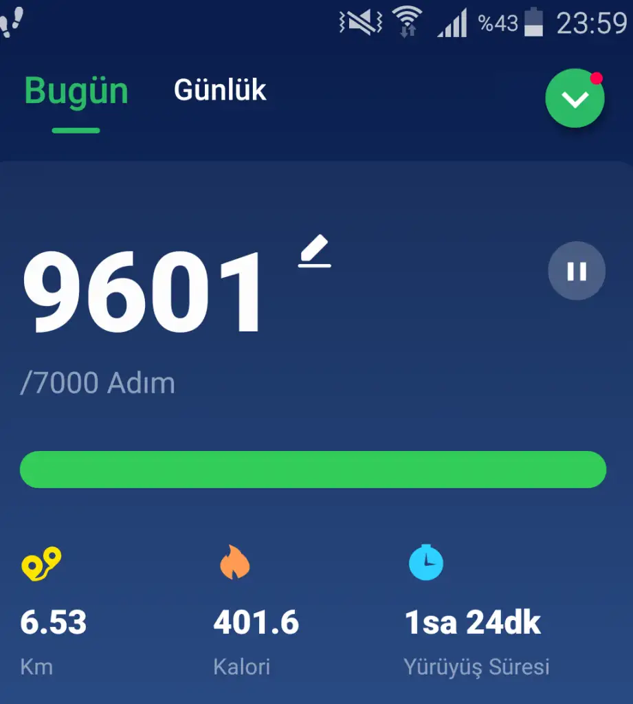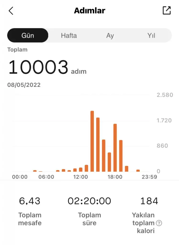Saat 22’de yattım biraz kötü hissettim. O yüzden adımımı tamamlayamadım.