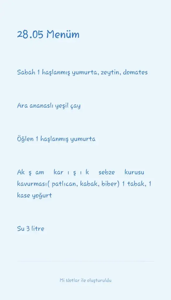 Bugünün menüsünü paylaşayım. Bu aralar diyet yüzünden çok halsizim. Dün yazmayı unutmuş olabilirim menümü ama bugünün aynısı zaten.