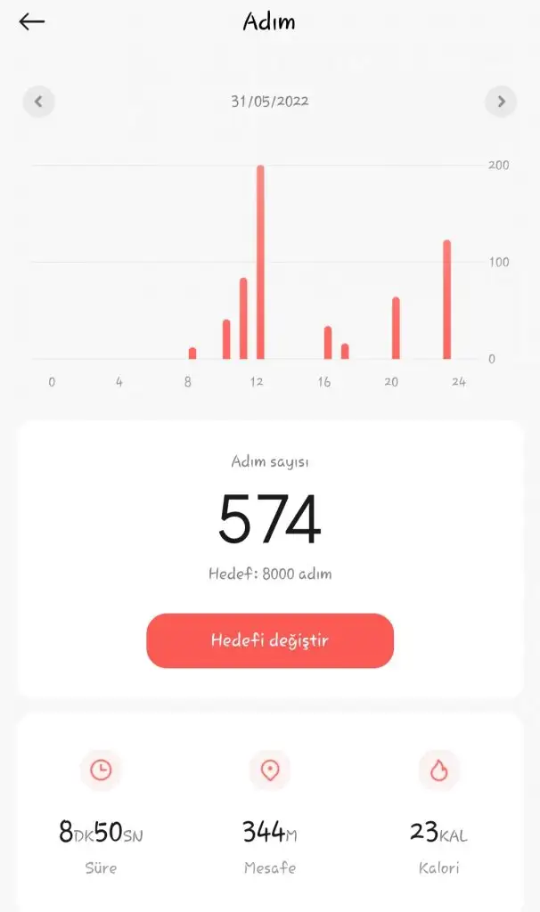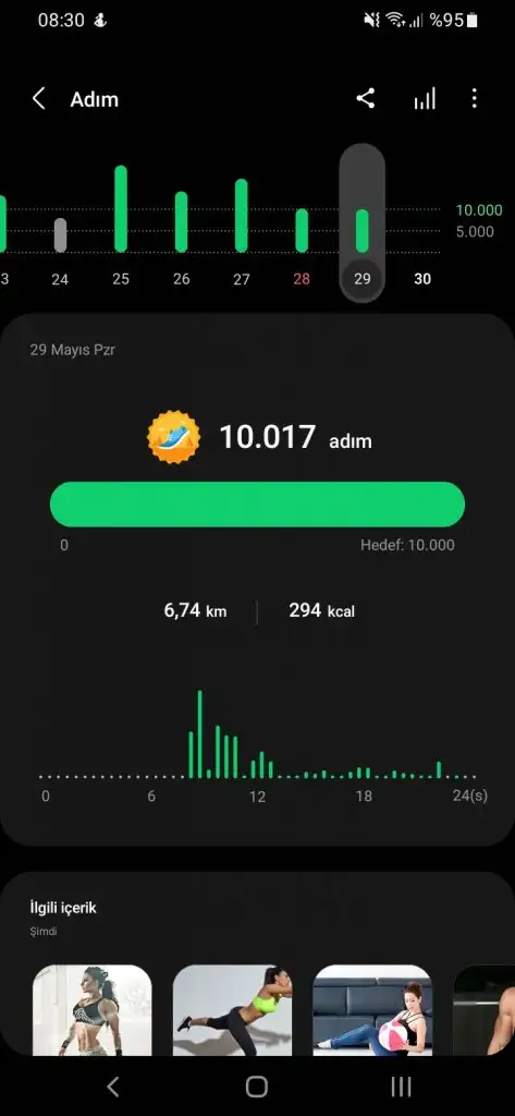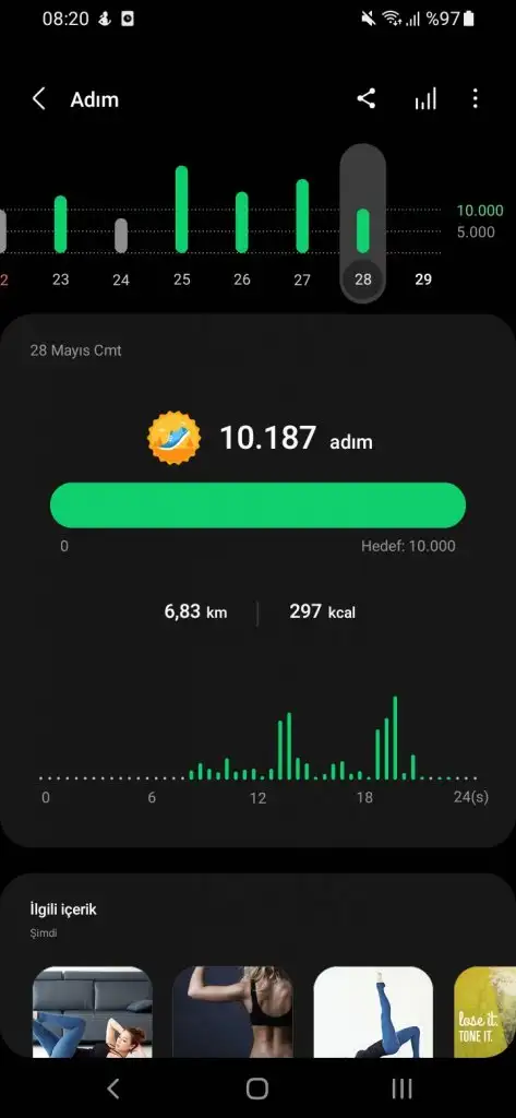 Dün yani 24 Mayısta: 7.972 adım yürümüşüm.