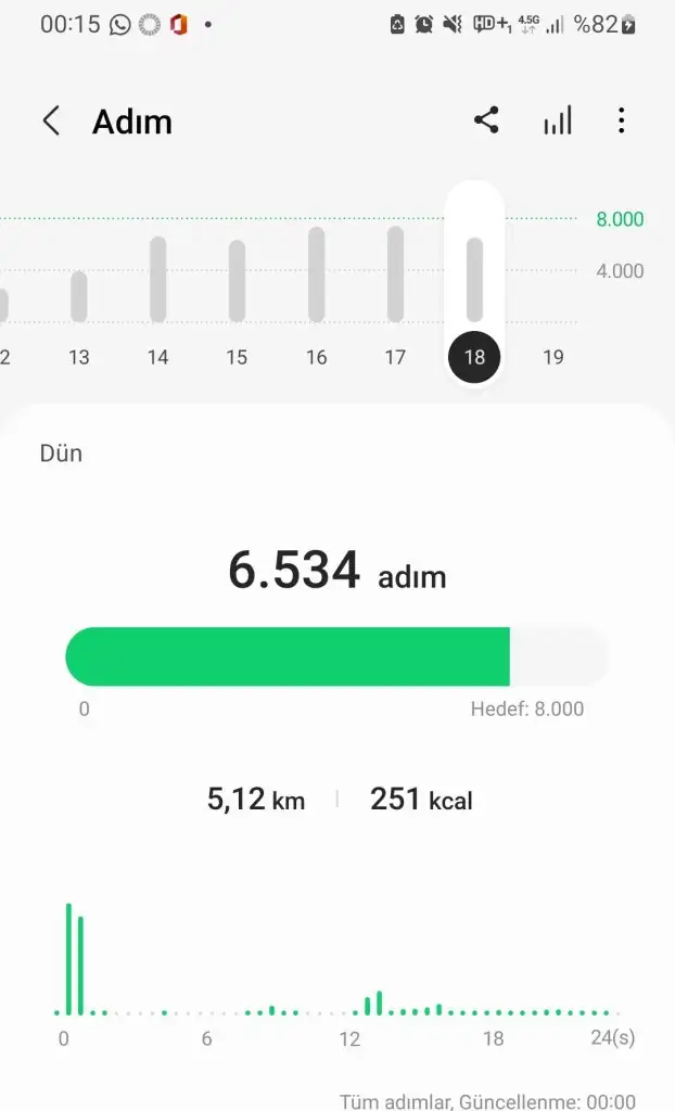 16.000 adım yapmıştım. Zaten sizin yanınızdan bile gecemem ama yinede sıfırlamasi sıktı canımı😌