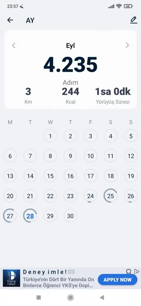 9492 adim 949 puan kusurati sevmem ama uyuyakaldim yorgunluktan