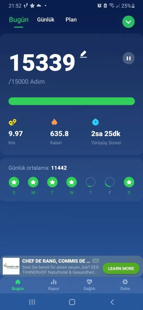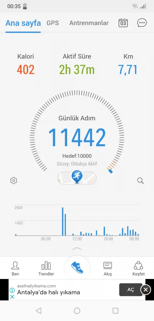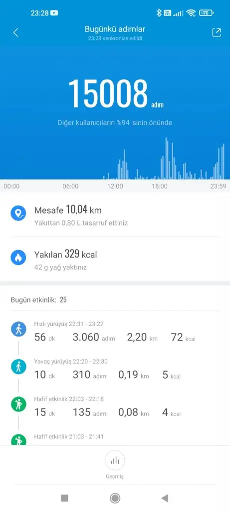 Saatimi şarja taktığım için adımlar 10bini bulamadı maalesef.