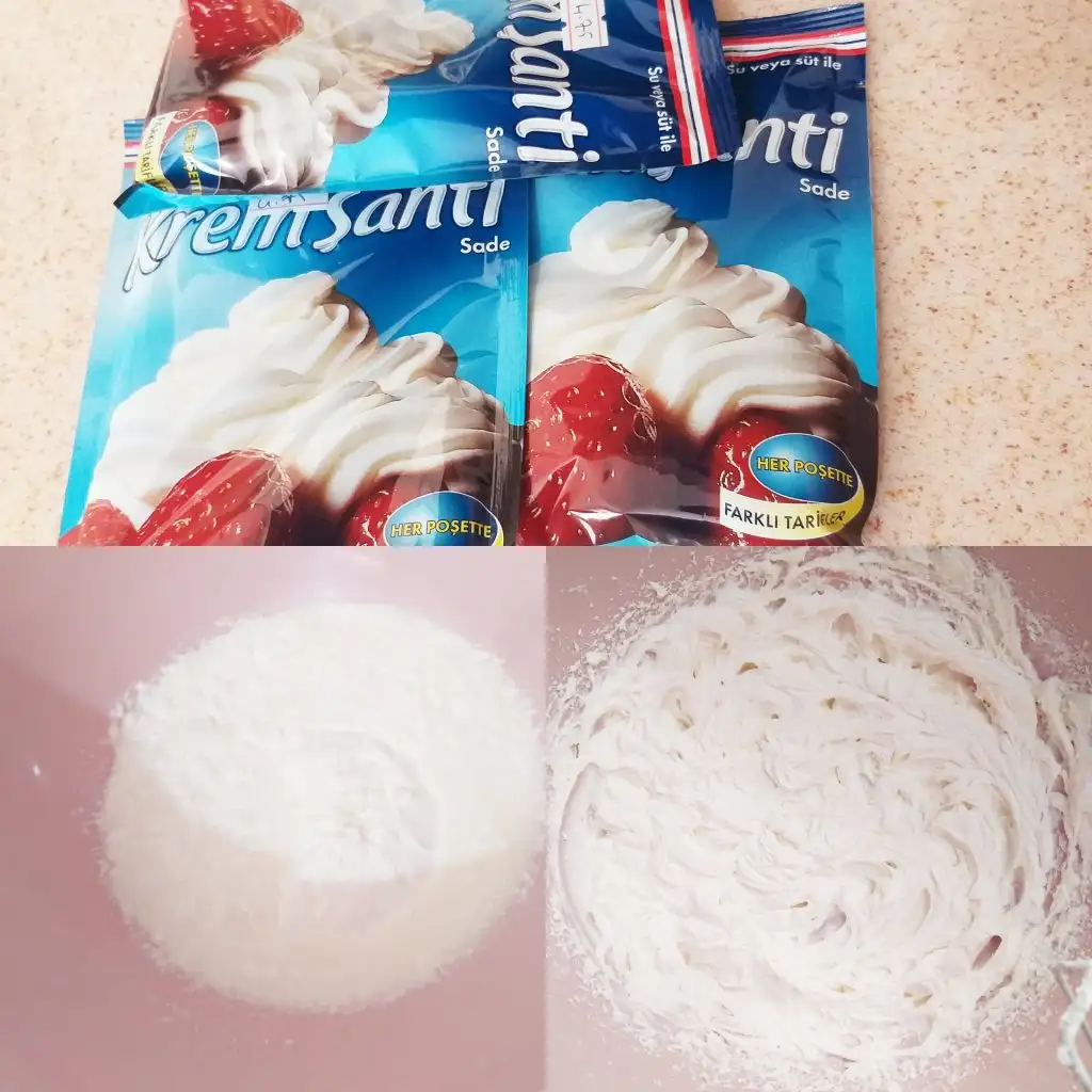 Daha sonra fış süslemesi için 3 paket krem şantiyi 1.5 sütle birlikte çırpıyoruz.