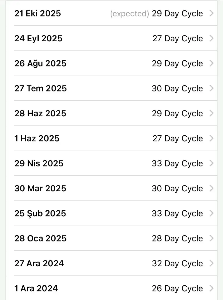 Kızlar selam yaklaşık 1 yıllık regl döngüm bu şekilde. Sizce ben hangi tarihte geciktim diyebilirim?en son 21 ekimde oldum. App ortalamasına göre 2 günlük gecikmem var ama testlerim negatif veriyor.