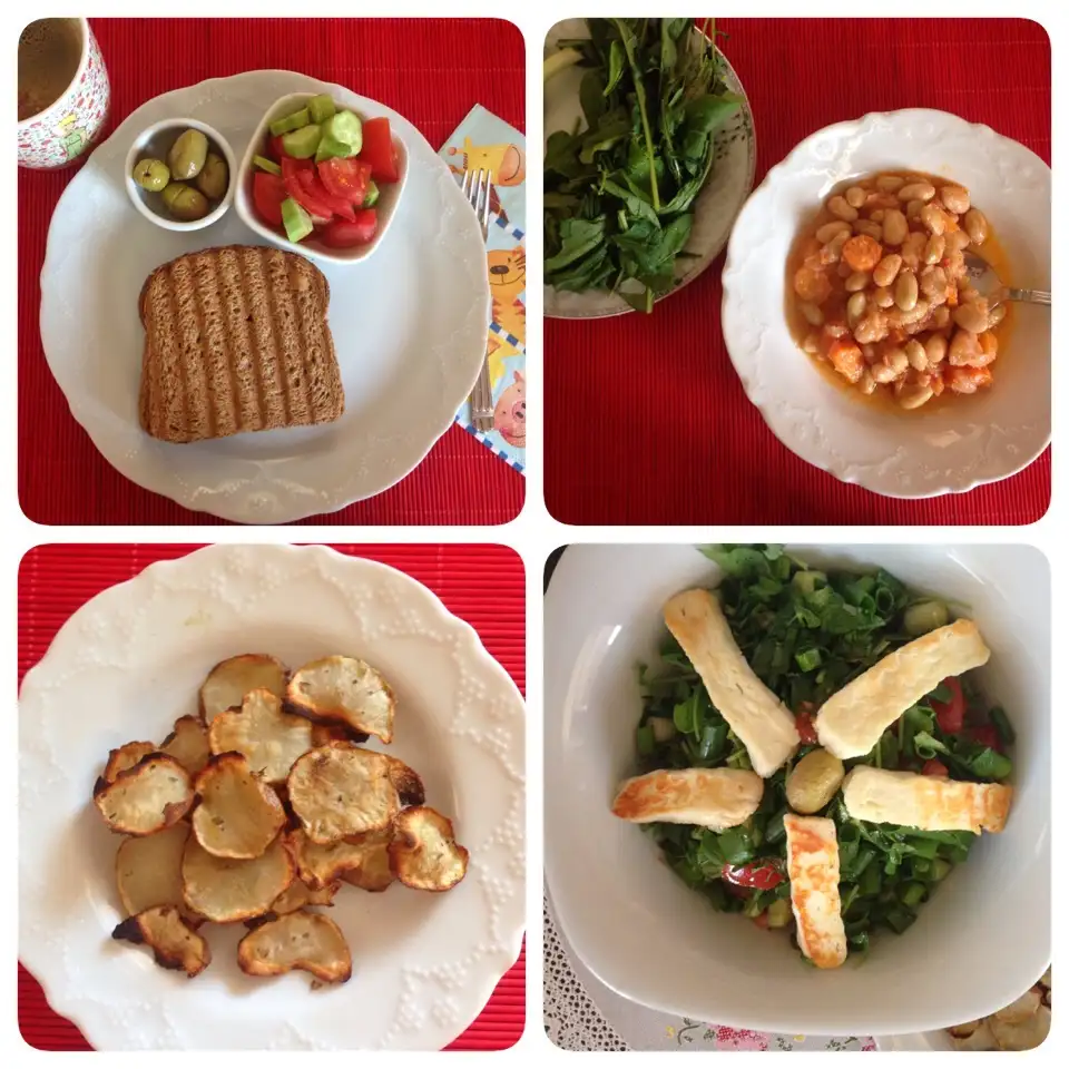 akşam:hellim salata ve yer elması cipsi(tarifi altta)