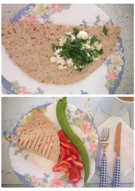 ögle:1 dilim ekmek, 1,5 dilim peynir,domates salatalık biber,yaseminli yeşil çay