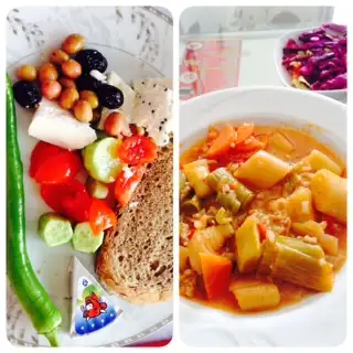 Bugün e özel bir durumdu.yoksa saglıklı beslenmem devam ediyor.. sabah yarım saat yürüdüm en azından içim rahat :)