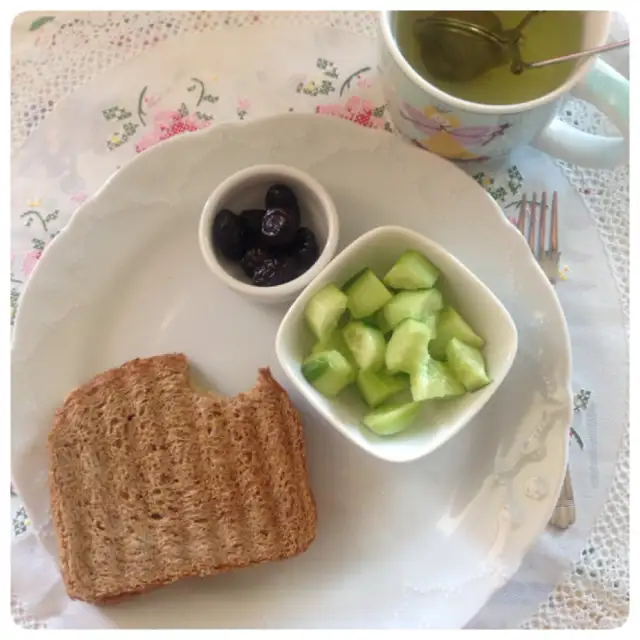 sabah:65gr ekmek,2 krem peynir,6 yeşik zeytin