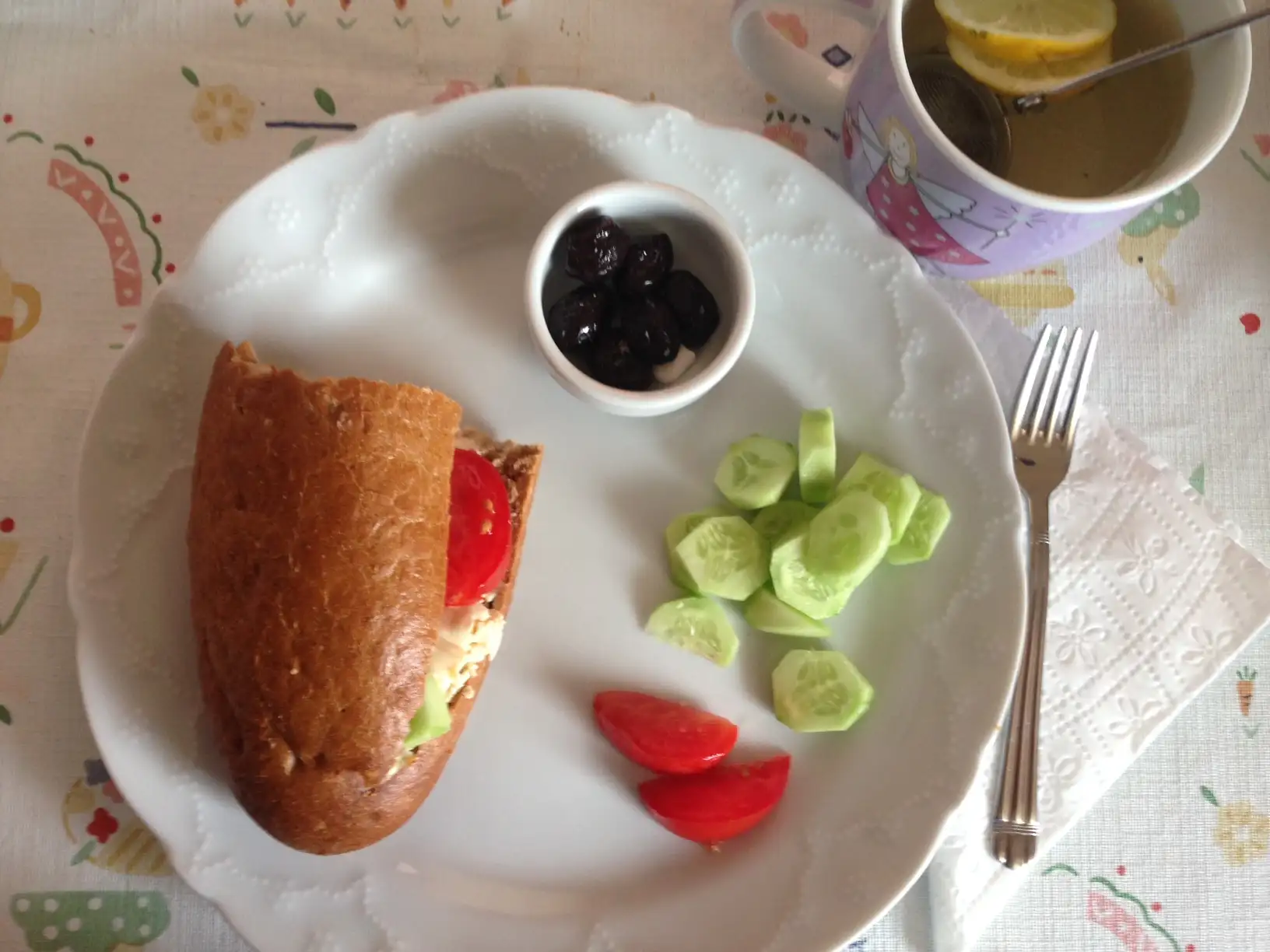 sabah:65gr ekmek,2 krem peynir,domates,salatalık