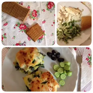 ögle:2 dilim fırında patatesli kaşar peynirli ıspanak yemegi,5 zeytin,salatalık