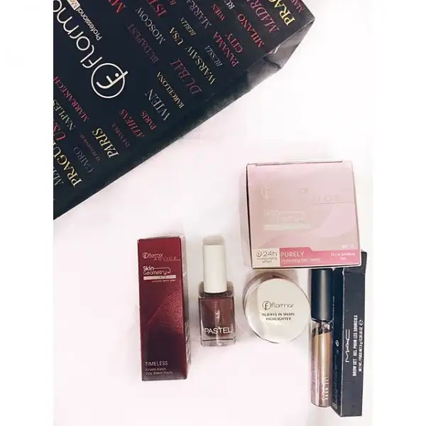 Flormar yüz kremi(kuru ve hassas ciltler için), flormar göz kremi, flormar always in shape highlighter 02 numarası beyazmsı, pembemsi bi rengi var, pastel 104 numara oje(ankarada aramadığım yer kalmamıştı), ve tabi ki her zaman kullanıp bitirdiğim ve kurtarıcı ürünüm olan mac beguile kaş rimeli sanırım 3.şişesini alıyorum
