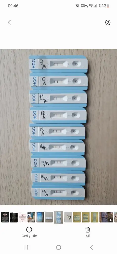 Biraz bi koyulaşma takibi yapmayı düşünüyorum canım . Eğer istediğim gibi koyulaşırsa kan veririm bakalım . Buraya da atarım siz de yorum yaparsınız artık koyulaşmış mı diye .Kimyasallarım var diye korkuyorum koyulaşma olmazsa diyeKuzum bende 11. Gün testi yapıp çöpe atmıştım belki hatirlarsin negatif sanmıştım.Aslında değilmiş ertesi gün sabah net gördüm cizgiyi yani 12. Gün. O günün akşamı verdiğim kanda ise 89.6 çıkmıştı. 11. gün silik çizgiyi farketseydim muhtelemen 40 li bir şey görecektim betada