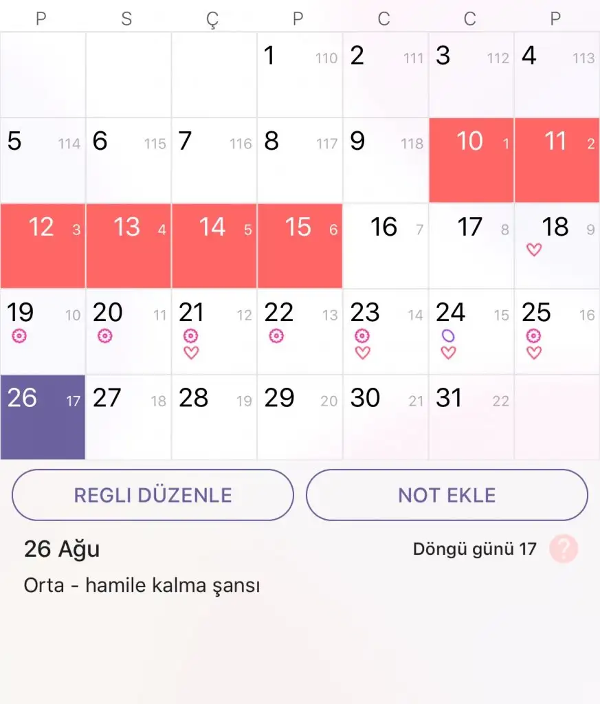 Her ıkı takvımdede yumurtlama gunlerım farklı gorunuyor bırınde bugun gorunuyor dıgerınde cumartesı kalp olanlar ılıskı yasadıgım tarıhler,10agustos adetımın basladıgı tarıh yorumlarsanız sevınırım dogru gunlerde bırlıkre olmus muyum merak edıyorum,