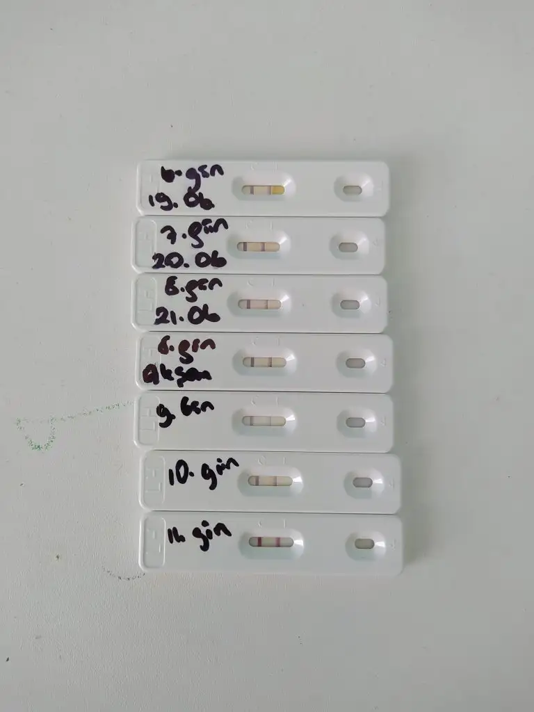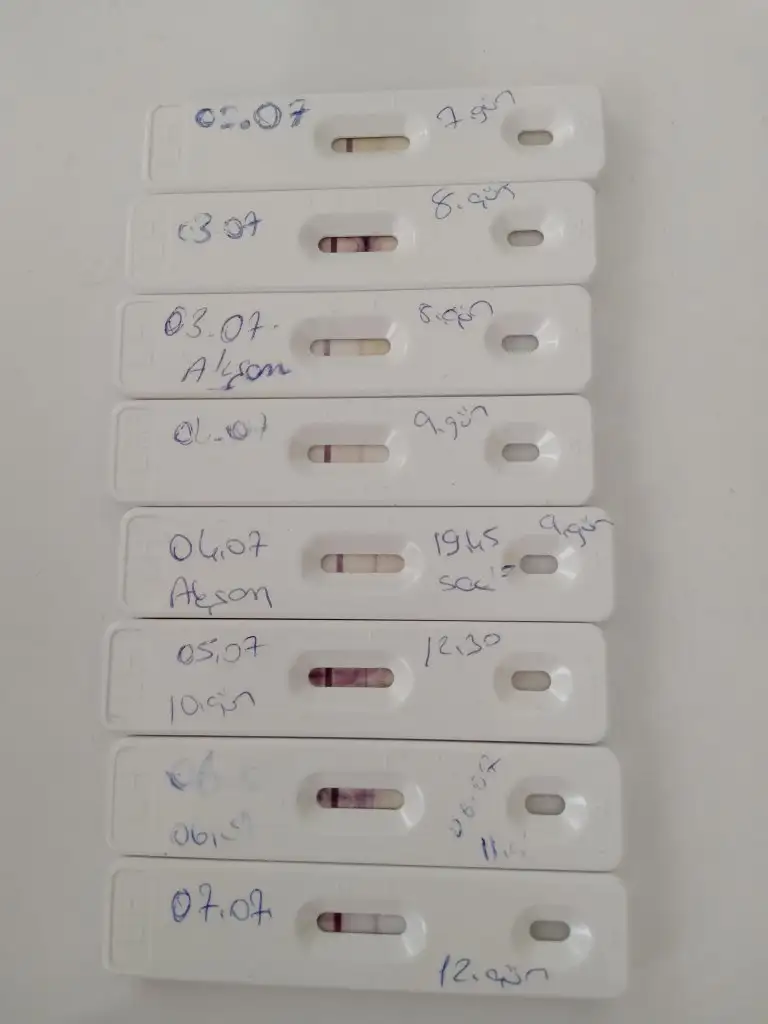 İki defa test yaptım birinde sanki silikti başka marka test aldım iki tane onlar negatif çıktı bugün adet günüm ama sulu beyaz akıntım var hala olmadım8.gün pik yapmış görünüyor, o günü ve ertesi iki günü değerlendirin.sizin testleri yorumlayabılıyorum ama kendımınkıleri yorumlayamıyorum hepsi koyu cızgı gibi![]()