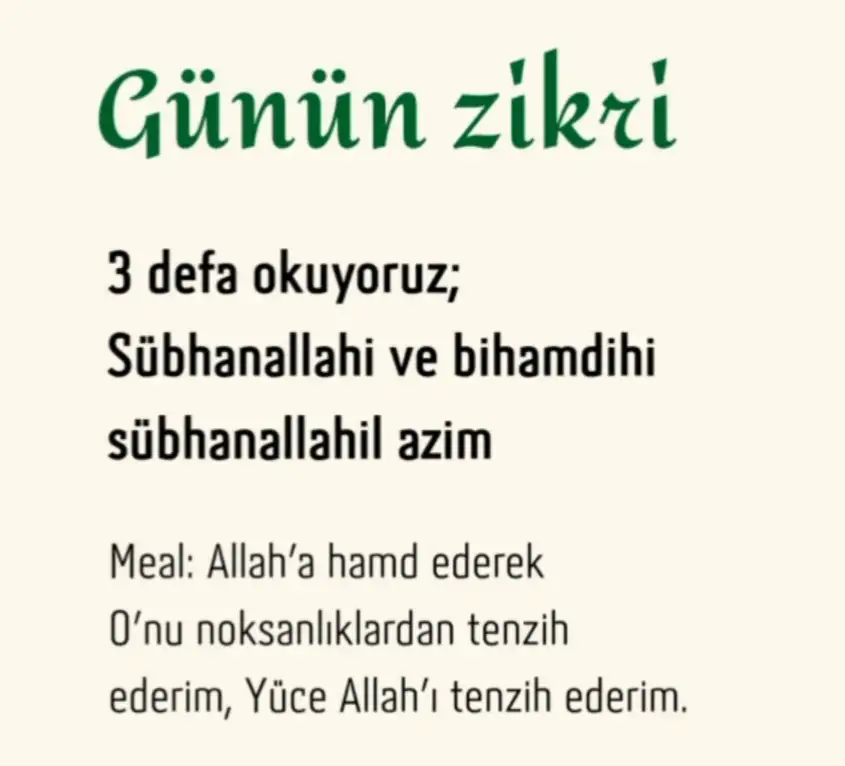 ❤ 3 defa okunucak"Sübhanellahi ve bi hamdihi adede halkihi Rida nefsihi ziynete arşihi ve midade kelimatihi.”