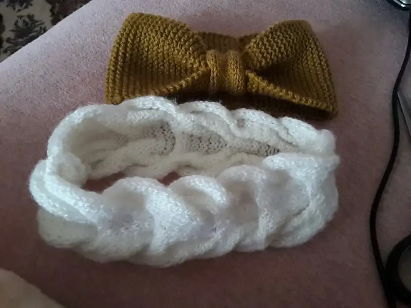 beyaz olanı henüz örüyorum bant yapmak isterseniz istediğiniz modeli bu şekilde kafa ölçünüze göre örüp uçlardan diktikten sonra istediğiniz gibi süsleyip kullanabilirsiniz