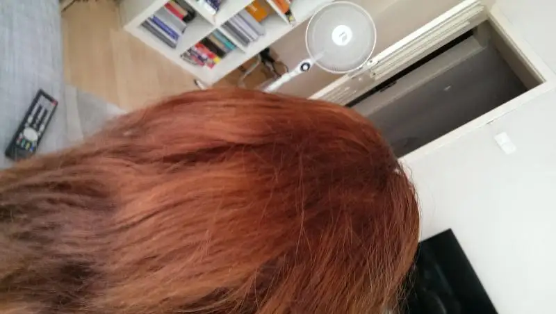 fönlüyken daha çiğ duruyor.ve aralarda hala kızılımsı turuncu renkler var özellikle iç taraflarda kulak üstünde ve enselerde.