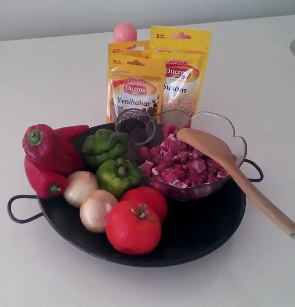 vayy arkadaşş bu ne hızz ellerine sağlık ama şahane olmuş buu..BAŞARILAR KUZUM..Ön bilgi; çobanlar küçükbaş (büyükbaş ) hayvanları dağlara yaylalara çıkardıklarında özellikle bahar aylarında yapabildikleri en pratik yemekler.yapmak için yüzeyi geniş, derinliği az olan sac veya tava kullanılır. Eki Görüntüle 1880054 Tutarı; 25/30 tl süre; 45dk(pişmeye bağlı) kişilik; tek ćeşit 2 kişilik, yardımcı yemek varsa 4 kişilik. malzemeler; 500gr kırmızı az yağlı sinirsiz et/ tavuk. 1 sb sıcak su. 2 soğan kuru soğan. 2 taze kırmızı biber. 2 taze yeşilbiber.2 orta boy domates. 2 ymk kuyruk yağı/sıvıyağ. Ducros karabiber, tuz. İsteğe göre ducros kekik kimyon. Eki Görüntüle 1880068 hazırlama; etleri zardan biraz irice doğrayalım. Soğan taze biberler domatesde aynı irilikte doğransın. Sac veya tavayı hatlı ateşe koyalım. 1) yüksek ateşte ısınan tavaya doğranmış etleri atalım.2-3 dk çevirelim.kapak artık kapalı olacak. suyunu salsın çeksin ,rengi dönsün.Kısın.(5dk) Eki Görüntüle 1880071 2) daha yumuşak isteyen 1/2 çb sıcak su ekle. Suyuda çeksin (5dk) soğanları at, çevir, kapat,arada karıştır (5dk) Eki Görüntüle 1880078 Eki Görüntüle 1880079 3) biberleri ve sıvıyağ ekle,çevir ,kapat.(5dk) Eki Görüntüle 1880082 4) domates ve ülker ducros baharatları isteğe göre at.domates susuz ise 1/2 sıcak su ekle.çevir, kapat.(15 dk) arada bakın. Eki Görüntüle 1880083 Eki Görüntüle 1880084 5) sebzeler melhem gibi pişecek ,kaybolacak.etler ôn plana çıkacak, görünecek.tuz at(5dk) pişsin.Dinlenmeye bırak (5dk) Sıcak servise hazır. Eki Görüntüle 1880086 Eki Görüntüle 1880087 Sunum ; domates pişerken sade pilav da pişirin.beraber dinlenirler. menü; saç kavurma, sade pirinç pilavı, ayran, hoşaf. Eki Görüntüle 1880093 Eki Görüntüle 1880096 sizler için azcık.afiyet olsunEki Görüntüle 1880098