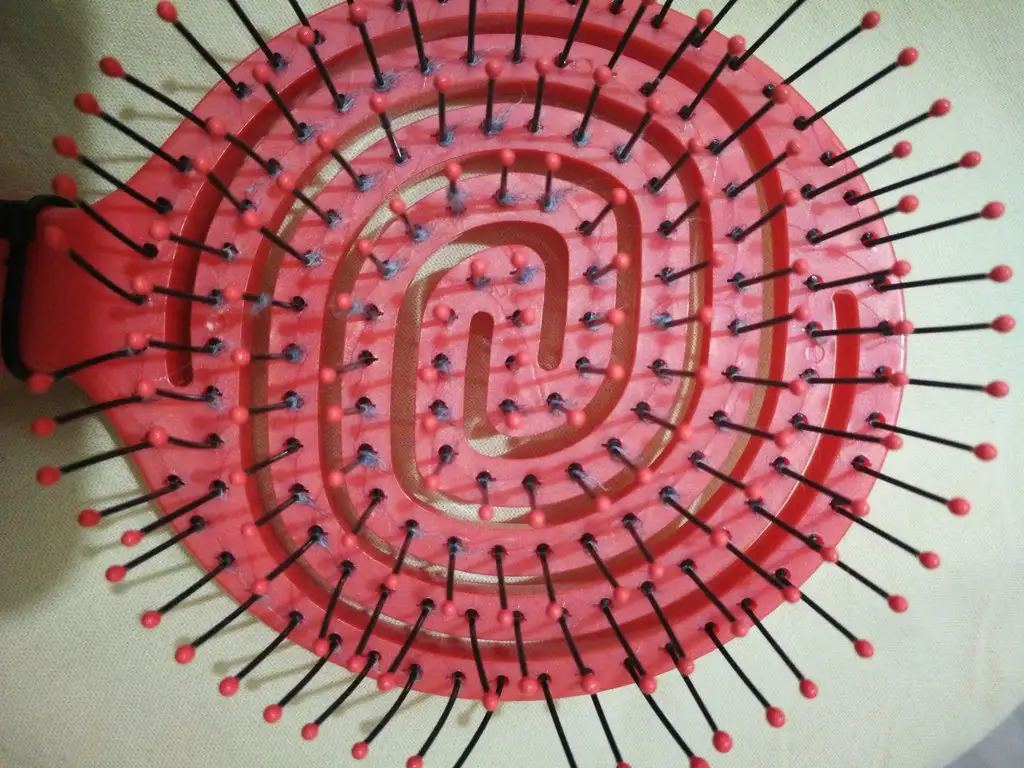 Saç fırçalarında sürekli ve kısa zamanda, her dişin dibinde böyle tüy topakları oluşuyor. Elimle tek tek temizliyorum ama her dişe dolanmış tüyleri tek tek almak çok zor, farklı bir yöntemi olan var mı? Fotoğraftaki dişlerin dibindeki gri topraklardan bahsediyorum.