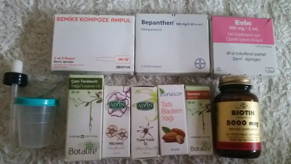 Biotin destegi alirken kesinlikle eczane tercih edin bilmediginiz yerden almayin.Eki Görüntüle 1666252 olcu olarak soldaki malzemeyi kullandim.hepsinden bir olcu sadece cam terebentinden iki olcu ampullerden de her sefere bir ampul ekledim.