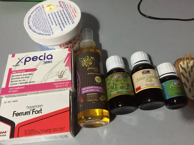 Xpecia saç dökülmesini engelleyen saç diplerini güçlü hale getiren tablet(günde 2) ve Ferrum demir eksikliği hapı(günde 1)