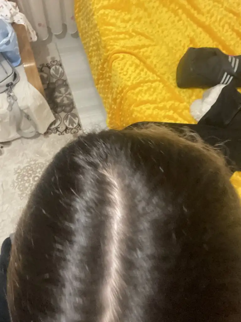 Ucu çok incelip koptuğu için kesmem gerekti dökülmeye başlayınca ama ben sarıyı indirmeye çalışıyorum çok dipteydi bir an önce çenene getirmeye çalışıyorum sadece sığır iliği yapıyorum Bu ilk hali saçlarımın biraz daha açıklık varmış sanki şimdi farkettim