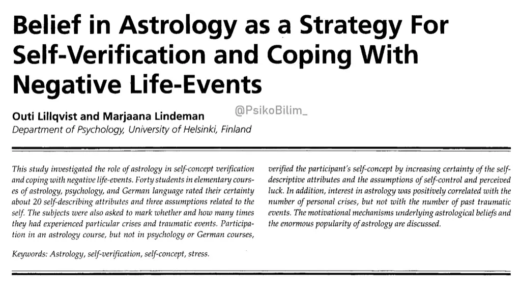 Astroloji sayfaları neden bu kadar yaygın? Çünkü insanlar astrolojiyi hayatlarındaki olumsuzlukların yarattığı duygular ile başak çıkma oranları olarak kullanıyorlar. Astrolojiye ilgi duyan kişilerin hayatlarında daha fazla kriz olduğu tespit edildi. Bu bulgu, astrolojinin özellikle zor zamanlarda insanların bir anlam ve destek kaynağı olabileceğini gösteriyor.