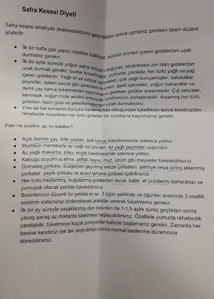 Safra kesesi ameliyatı oldum ne yemeliyim?