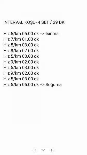 İnterval antrenmanı kısaca özetlersek; mantığı 1 dk yüksek tempoda koşup 2 dk yürüyerek dinlenme ve tekrar 1er dk yüksek tempoda koşma şeklinde devam ediyor toplamda 30-40 dk sürüyor. Nabız birden yükselip birden düştüğü için vücudu şaşırtmış oluyoruz ve vücut alarma geciyor olağan dışı bir durum olduğunu düşünerek hemen stokları yağları yakmaya başlıyor. Kendi interval antrenman programımı resim olarak ekledim sen de kendine göre uyarlayabilirsin. Karın egzersizlerimi YouTube daki P4P Turkish kanalından yapıyorum kol için de 2 kglik ağırlık egzersizleri ile triceps çalışıyorum. Bazen de "tone arms in 10 minutes workout " ile çalışıyorum. Bu bahsettiğim kanal ve çalışma videosu gerçekten çok iyi tavsiye ederim. Ama ağırlık zor oluyor kaldıramıyorum diyorsan direnç bandı al ben bazen direnç bandiyla calisiyorum o da çok etkili oluyor.