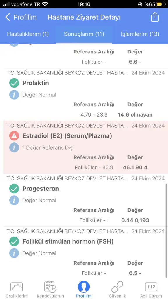 Canım diğer test sonuçlarını bilmiyorum ama farklı bir hastanede yaptırdıysam amh ondan farklı çıkmıştırKızlar hormon sonuçlarım çıktı yanlız doktorum izne çıkmış yumurta takibi diğer aya kaldı