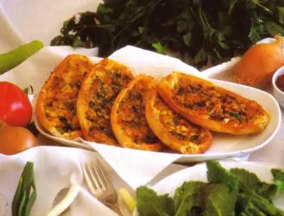 tuz . un . su ile hamur yoğrulur . ince açılır . iç çğden konur . yağda kızartılır . bildiğin lahmacun olur . tadı öyledir .