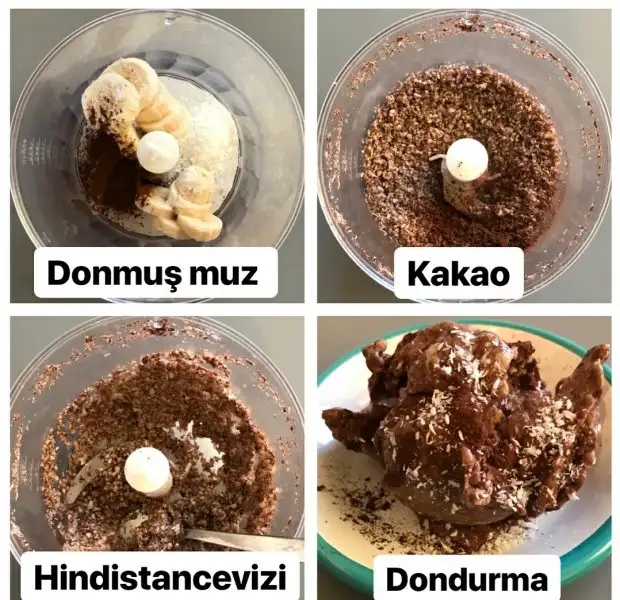 Baksana ilk sayfada kakao , donmuş muz bi de başka malzemeyle dondurma yapmışsın ama o beyaz malzeme ne çözemedim