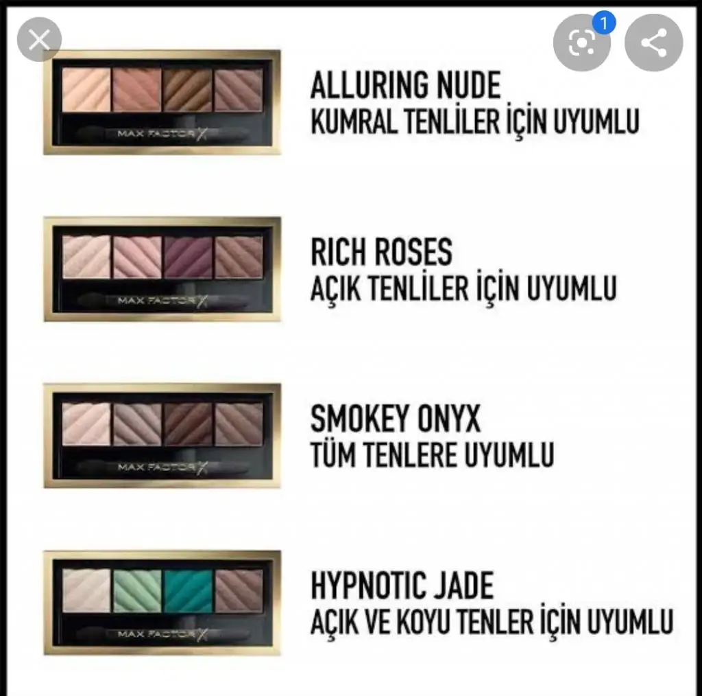 Bunda ilk sıradaki var bende ama kullanınca bildiğin kahve kahve azıcık böyle kenarından yeşil pırıltılar bulunan kahveye dönük kahve gibi ama değilBöyle 4 lüsüde var canım