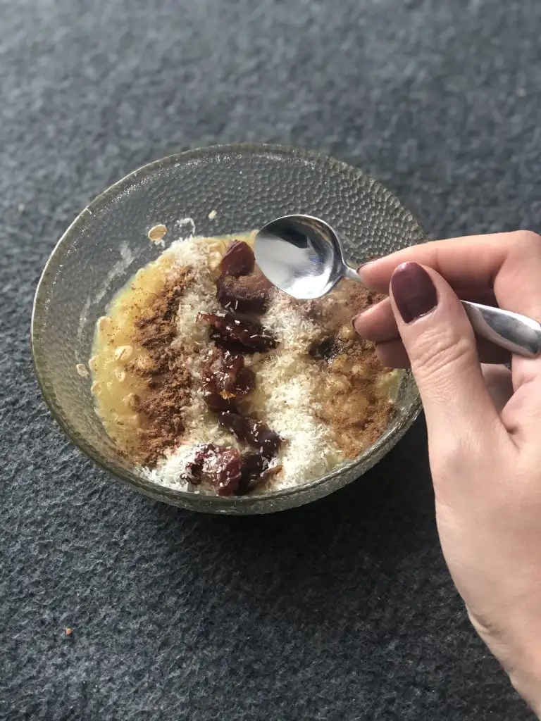 üzerine hindistan cevizi, tarcin, 1 hurma koydum ben
