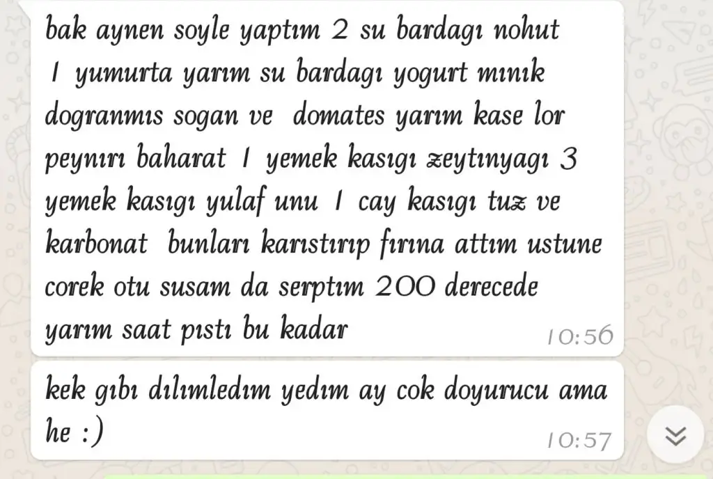 Evet hic bise yemedim temizlik yaptigim icin ara vermek istemedim ki normalde de oglen cok bise yemiyorumOglen birsey yok mu. Bravo sana, aksama kadar dayanabiliyorsan![]()
