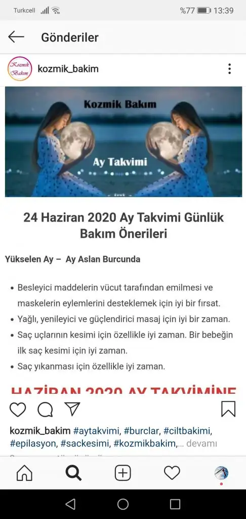 hah baska kozmık bakım sayfasına baktıgımda da bugun kesım ıcın uygun dıyor