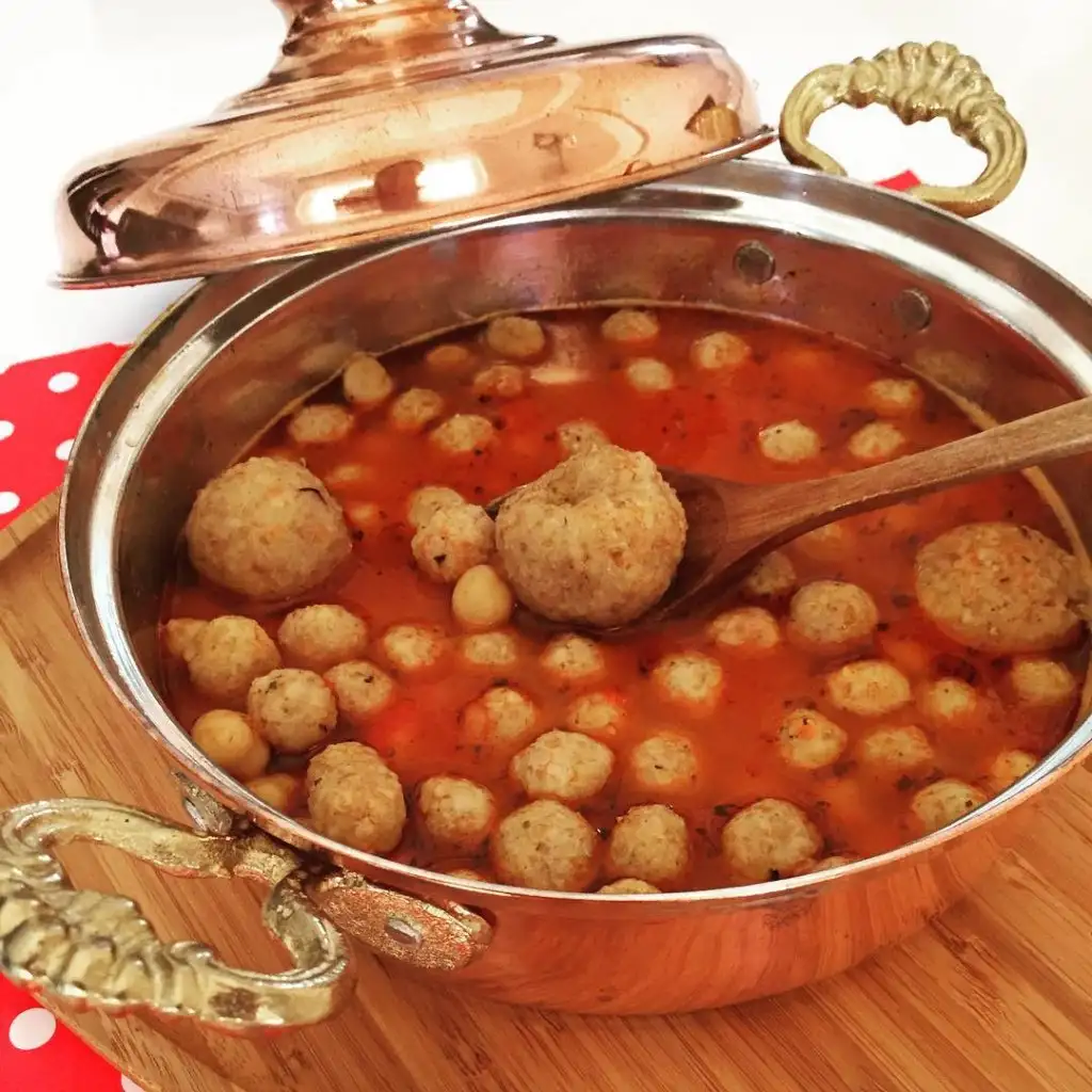 Sizinkinde toplar kocamanmış nisam konyada bulgurlu kıymalı topları daha ufak koyarlar, cevizden de küçük olur. Kimi nohut koyar kimi koymaz, ben nohutlu halini daha çok severim. Çok besleyici bir yemek ama.hepsı çiğden konuyor canım