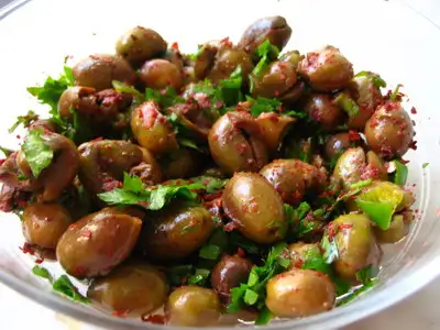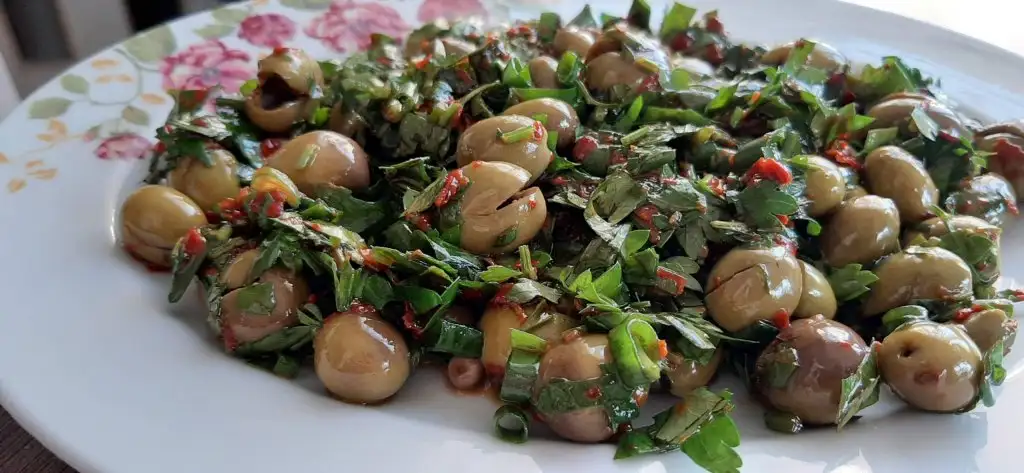 yesıl zeytın salatası yaptın mı hıc hanı ıcıne kuru sogan maydanoz bol lımon cevız pul bıber koydugum ve cekırdegı cıkarılmıs kırma yesıl zeytın koydugum salata ? onu yapıp yemedıysen cok sey kaybedersın