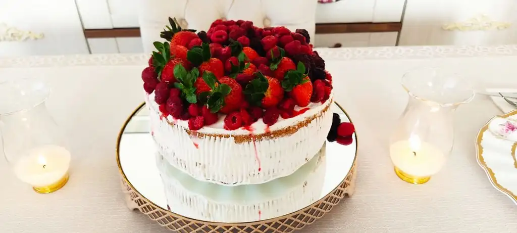 pastanın kekı badem unundan yapıldı ıcınde seker yok ama kremada cıkolata var ve ıc dolgusu da cıkolata var