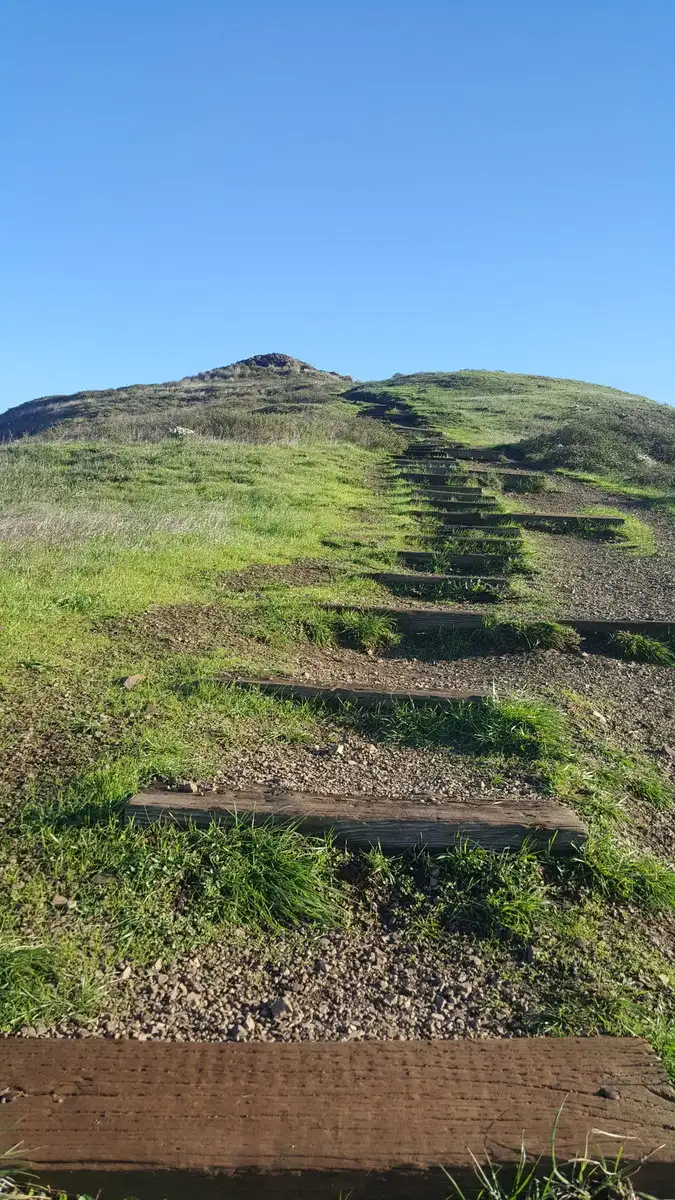 Tepenin biraz daha tepesi var. Merdivenlerden alçak dağlara tırmanıyorsun. İlk çıktığımda yapmıştım onu da. Ama şimdi araba yolunda koşturup eve dönüyorum. :)
