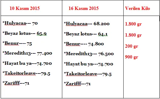 Canim ben dun tatildim kiyafetlerimle 71.9 gibi biseyimama vericem insallah benim tatilma firsatim olmicak pek bn tartildikca soylerim inşallah istersen listeden sil beni de duzenli bildirimde yapamayabilirim duzeniniz bozulmasin