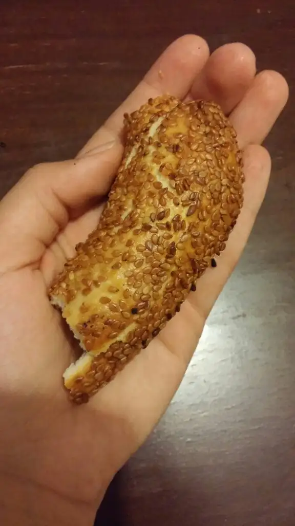 Tabağa alırken dağıldı tabi. Ama çok lezzetli idi. :) Lakin akşam yemeği için biraz fazla sanırım bu. Midem acayip bulanıyordu yine. Kardeşim de simit almış. Dolayısıyla;