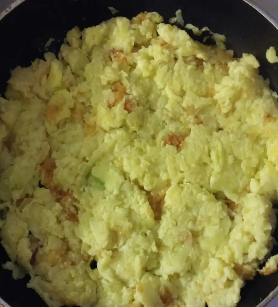 Önce bir kabağı rendeleyip elimle suyunu sıktım, sonra 1 yumurta ile çırptım. Bu kısımda çok hoş gözükmeyebilir. :)