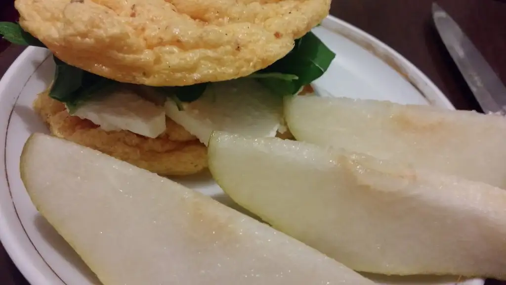2 tane oopsie arasına 20 gr kadar süzme peynir, 1 yaprak roka, 1-2 yaprak maydanoz ile sandviç.