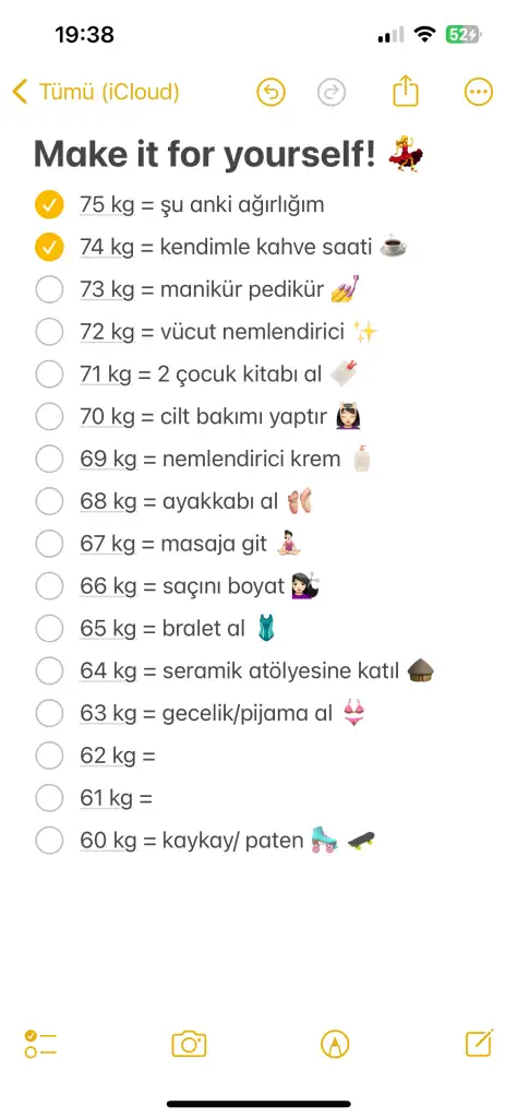 Ne güzel plan yapmışsın, ben bu sene zaten 5 kilo ile açmıştım yazı +4 kilo ile de tatilden döndüm tatilden. Ve pazartesi itibari ile ekmek, pilav vs gluten şeker tüketmiyorum. Umarım çabuk toparlarım. Kıyafetlerimin içine girememek çok kötü bir duygu. Ve direk,popo ve basenden kilo almak da cabasıSelamlar Hanımlar,