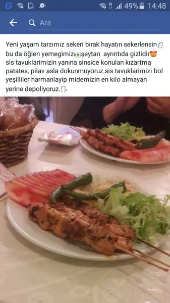 Son arkadaşlar ben 3 gundur sağlıklı yaşama kafayı takmış biriyim. Facebookta bir grup kurdum 2 kişiyim şimdilik yediklerini falan paylaşıyorum bakmak, eklemesiniz bile yorumda bulunmak isteyen gelebilir. Bu yılda herkese bol sans ✌✌✌